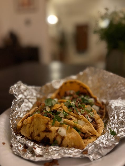 Anna Cave: Breakfast tacos for some Texan childhood nostalgia - potato, egg, bacon, and cheese in a flour tortilla, please.