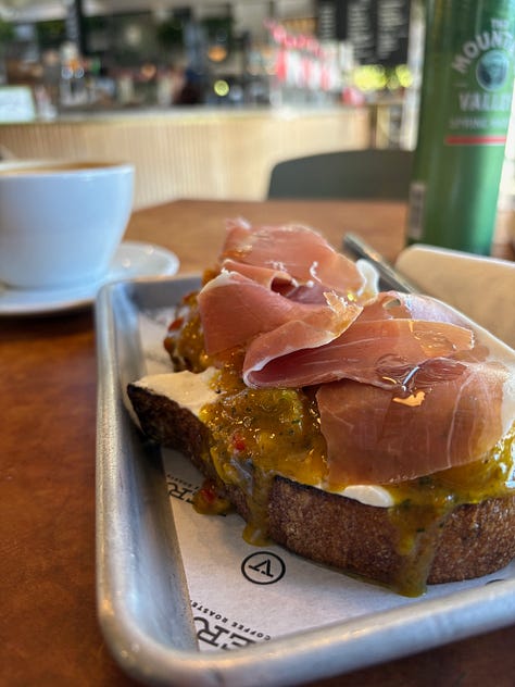 Or, at least the standouts: Magpies soft serve in tangerine creamsicle with rainbow sprinkles | Salvadorian carne asada tacos with fresh corn tortillas from a sidewalk in Echo Park | sour elderflower Swedish fish from Broome St General | Sourdough toast with labneh, kumquat jam, and prosciutto from Verve | chicken tikka masala, veggie curry, and paneer naan from India Fresh | cream top coldbrew and carrot cake from Doubting Thomas | homemade pork dumplings that were a labor of love but I got tired of despite their deliciousness | Taralli crackers from Kamp | Frutas from street vendors “con chimoy, tajin, y limón