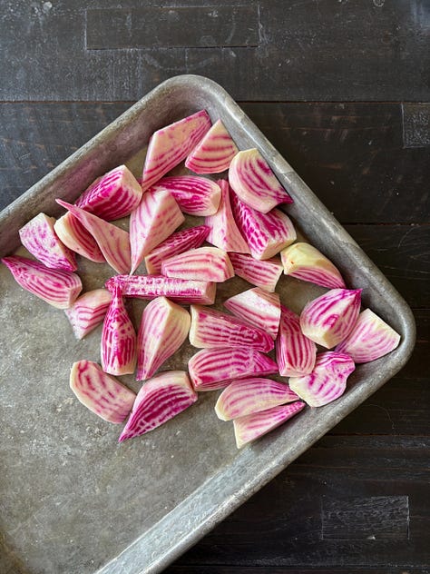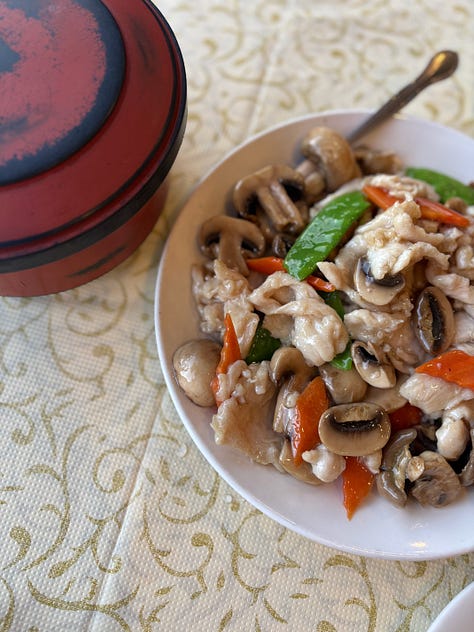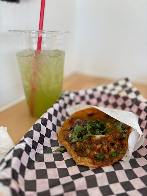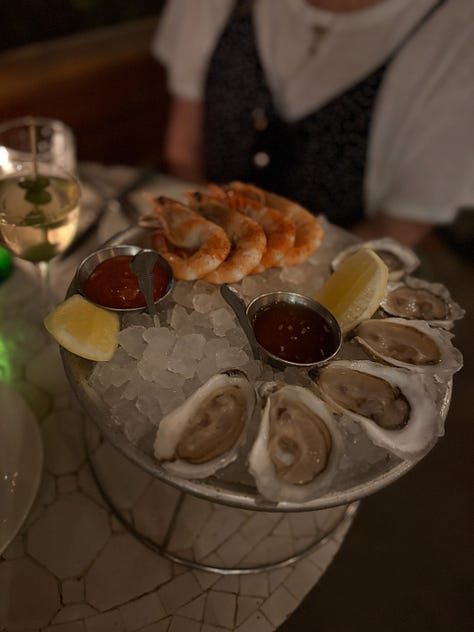 Or, at least the standouts: aforementioned Taqueria Frontera tacos that blew my mind | Loquat’s Mascarpone foam coffee creation | vodka sauce with shrimp linguine | hyper fixation lunch of pita stuffed with mortadella, provolone, and salad with LOTS of peperoncini | chip mountain and deviled eggs for an indoor picnic | a dreamy dinner at Queens Raw Bar (get the shrimp and DO NOT sleep on the carolina gold rice) | mini Cherry Coke and Zesty Yuzu chips | candy stripe beets, roasted via Frecker Farms | Chinese feast of chicken with mushrooms and sesame beef after a visit to a local Buddhist temple