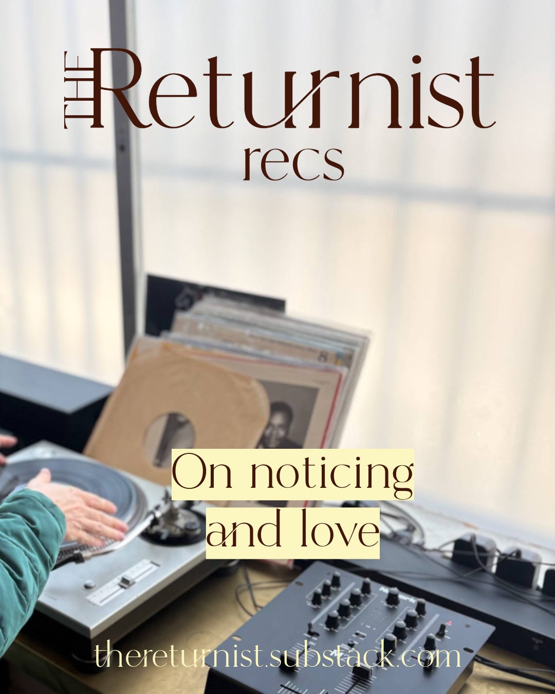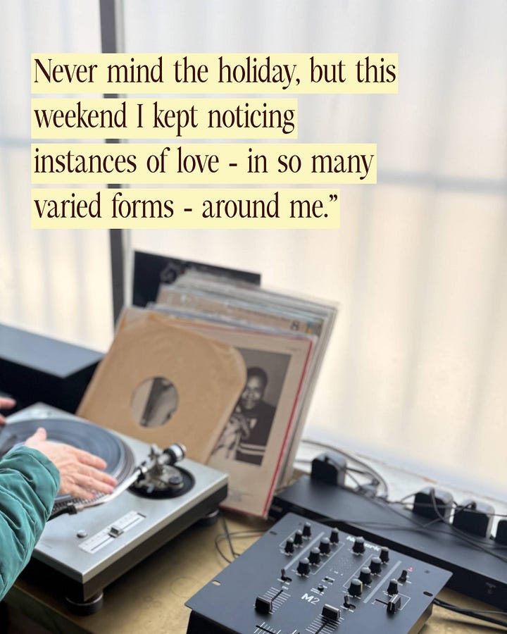 Never mind the holiday, but this weekend I kept noticing instances of love - in so many varied forms - around me. Sure, Adam and I had our own little romantic moments to mark our first Valentine’s day together. But even that was more lovely-normal-feeling-day-out-and-quiet-evening-home than grand-gestures-and-syrupy-sentiments. This week’s rec is simple… take notice. It might surprise you.