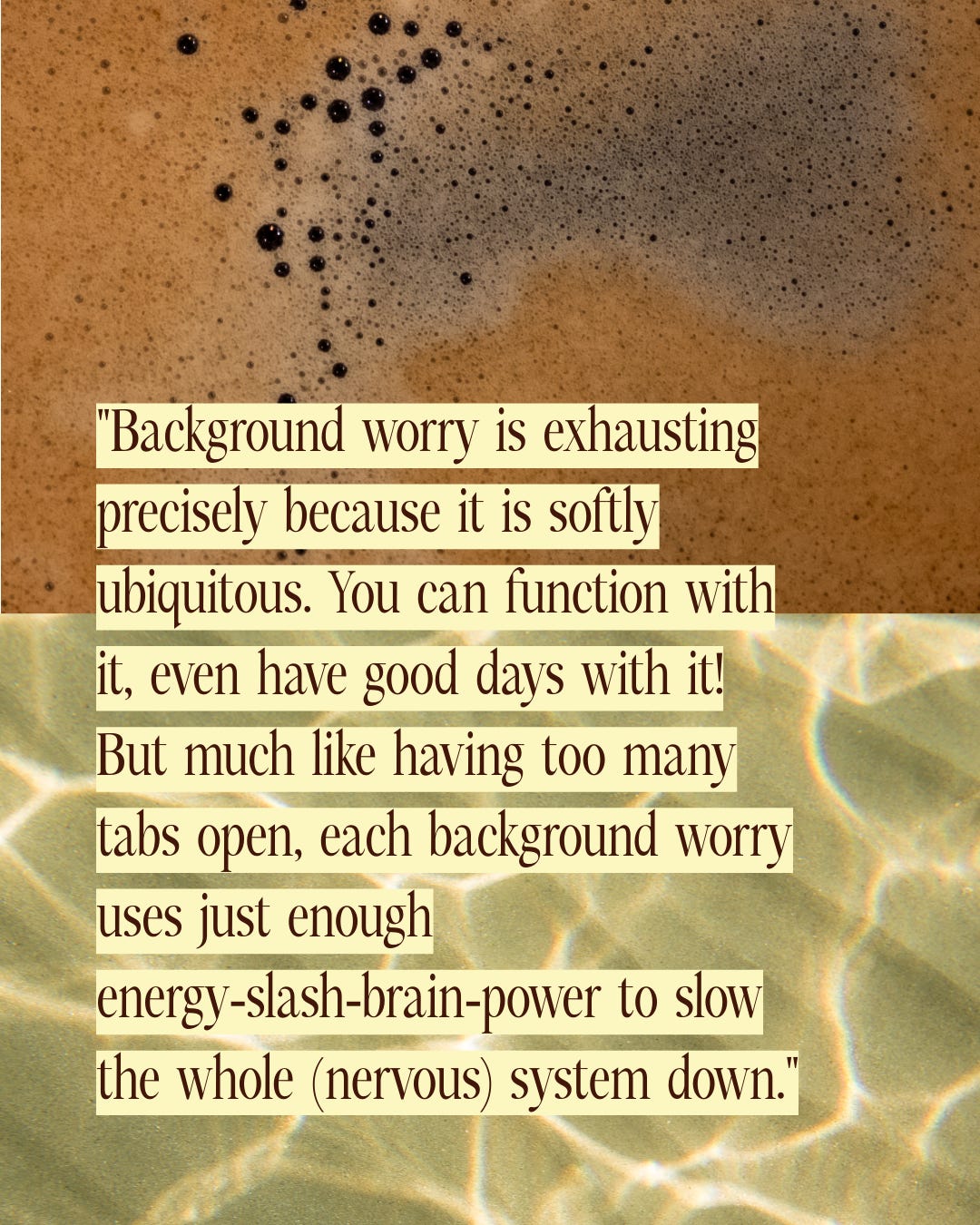 Lately, I’ve noticed a low hum beneath otherwise normal days. Not quite panic or crisis, but a steady undercurrent of worry that doesn’t interrupt life so much as accompany it. Without announcement, it hovers while I walk the dog, sip my coffee, answer emails, fold laundry, scroll, laugh, read, get ready for bed. I’ve given this hum a name: background worry. Sure, sure I’ve had plenty o’ bouts with your garden variety anxiety, but in many ways, this hum is different. It doesn’t demand immediate action, trigger alarms, or fall clumsily toward deadlines. It’s a shadow character in the margins, quietly taxing attention, asking to be managed without fully resolving.
